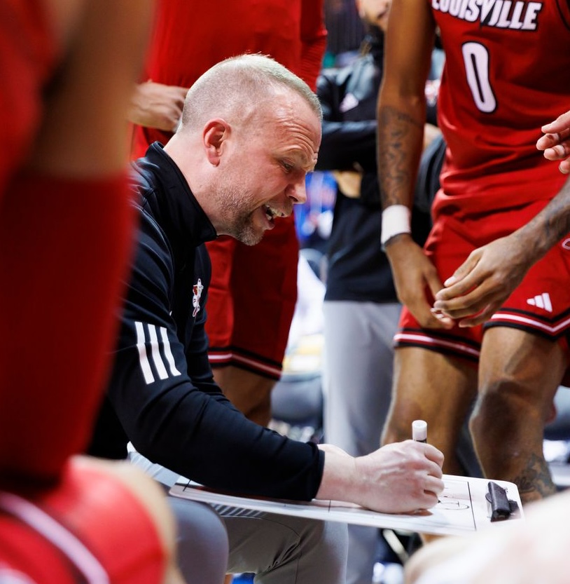 Coach Pat Kelsey has revived the Louisville image by adding key players, including Mikiel Brown and Ryan Conwell, along with Isaac McKneely and Adrian Wooley. The Cardinals were impressive defensively in their 96-88 win over Kentucky. Photo by Louisville Athletics.